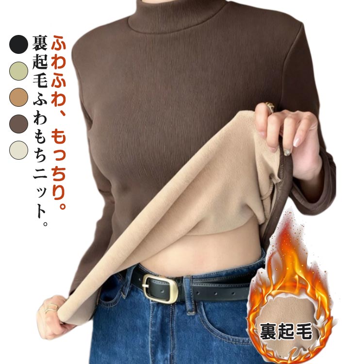 裏起毛 ニット トップス レディース ハイネック セーター モックネック 裏ボア 秋冬 長袖 オフィス カジュアル