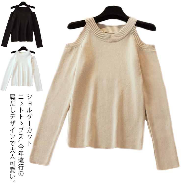 ニットトップス タイトニット オフショルダーニット 肩出し ニットセーター インナーニット レディース 無地 トップス セクシー 可愛い 新作 長袖