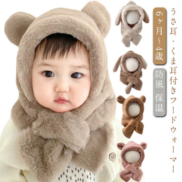 フードウォーマー 防風 くま耳 うさ耳 キッズ フード 防寒帽子 マフラー 秋冬 保温 ベビー帽子 耳付き フード付きマフラー 防寒 ふわふわ ベビー ボア ネックウォーマー 一体型