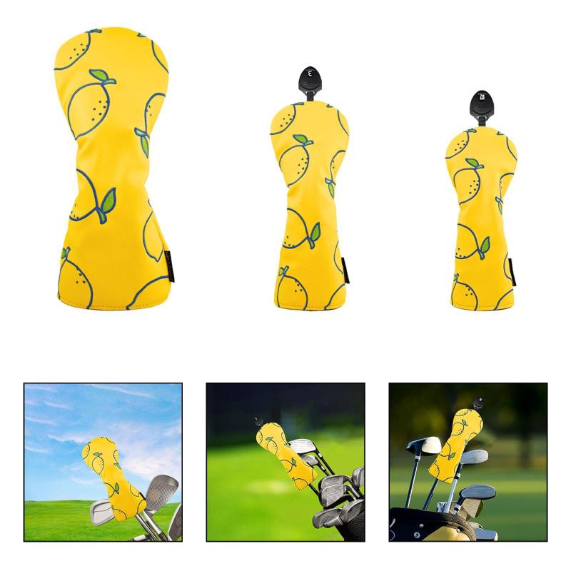 レモンプリントウッドヘッドカバーゴルフクラブヘッドカバーファッション愛らしいゴルフアクセサリーポータブル防水材のカバープロテクター