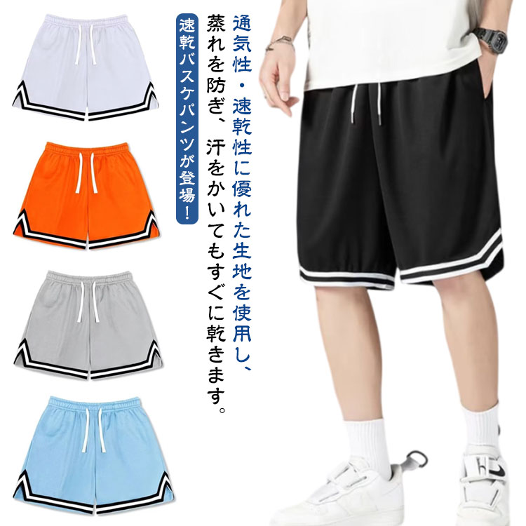 短パン メンズ ハーフパンツ 紐付き 運動着 夏 ウエストゴム バスケットボールパンツ 5分丈 トレーニング 半ズボン