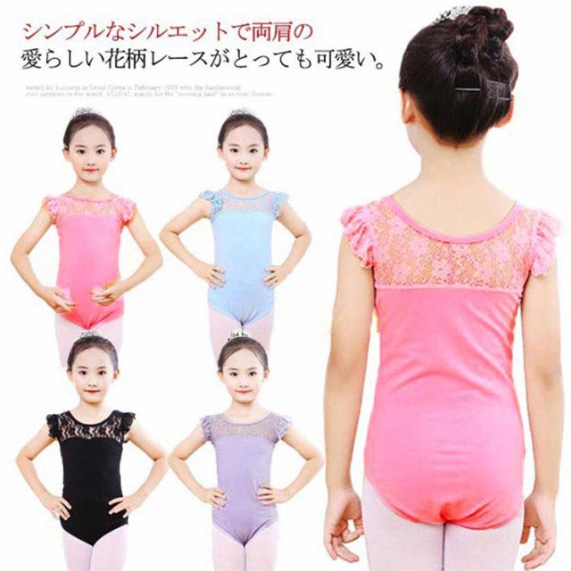 子供 バレエレオタード スカートなし 練習用 バレエ ダンス服 フリル バレエウェア ジュニア用 キッズ 子ども 黒 ブラック バレエ練習着 体操着 レース柄 通気性抜群 130 140 15 120