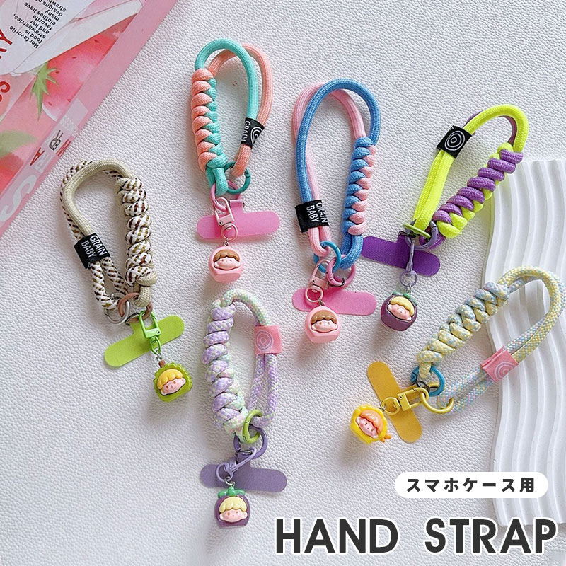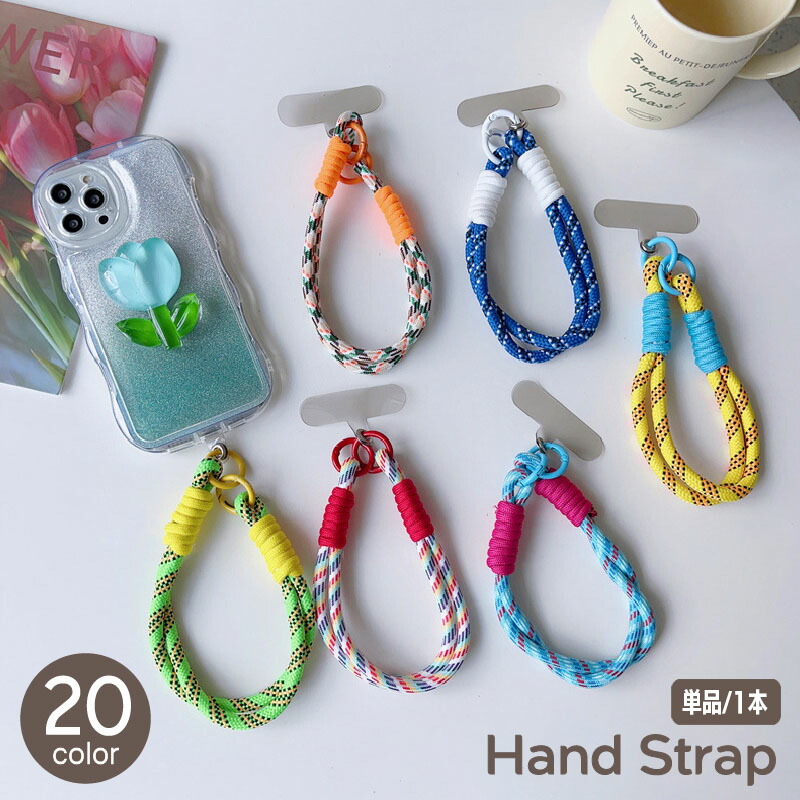 スマホストラップ ハンドストラップ スマホ 単品 1本 ショートストラップ 手首 手ぶら 落下防止 紛失防止 挟むだけ ロープ 紐 可愛い おしゃれ バイカラー パラコード スマートフォン カラフル