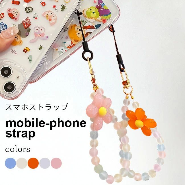 着脱 ビーズストラップ マカロンカラー 紛失防止 落下防止 携帯ストラップ 手首掛け 可愛い リストストラップ ビーズ ストラップ