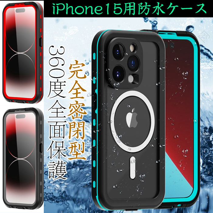 iPhone 15 対応 防水ケース 360度全面保護 防水防雪 防塵 耐衝撃 完全密閉型 水中カバー 両面ケース ワイヤレス充電対応 脱着簡単 Pro タッチ感度良い