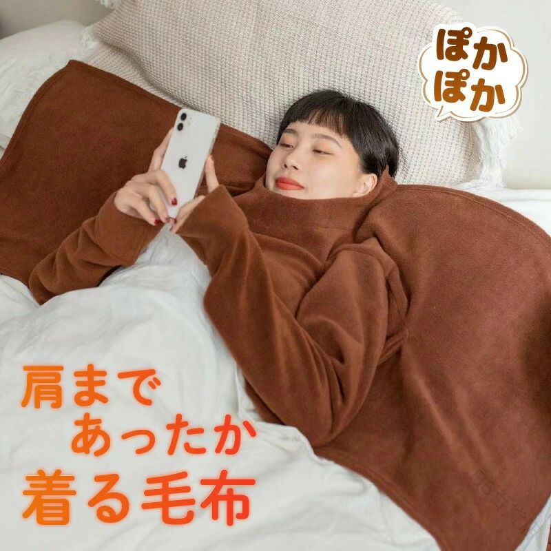 寒い季節に最適な起毛素材使用の袖付きブランケット 肩まで包み