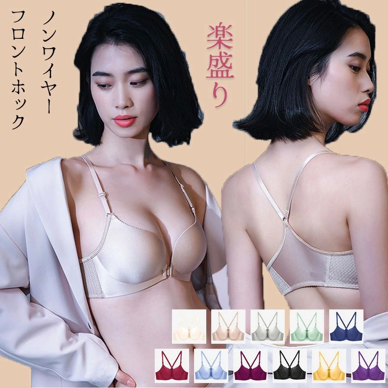 アツギ 盛れるブラ セクシー 谷間 矯正 姿勢 パット-体型 防止 ずり落ち 肩紐 ノンワイヤー フロントホック ブラジャー 前開き
