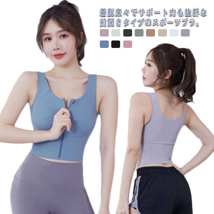スポーツブラ スポブラ ヨガブラジャー レディース おしゃれ 前開き フィットネス ノンワイヤー ハイサポート ヨガウェア フロントファスナー付き スポーツウェア 通気性 吸汗速乾 中学生 揺れない