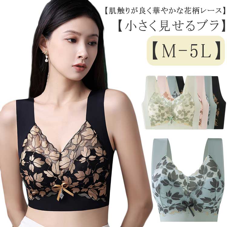 小さく見せるブラ 小さく見えるブラ ノンワイヤー 胸を小さく見せるブラ 花柄レース 補正下着 背中 脇肉 脇高 設計 補正ブラ 大きな胸を小さく見せるブラ 着やせブラ ナイトブラ 薄い ス フルカップ