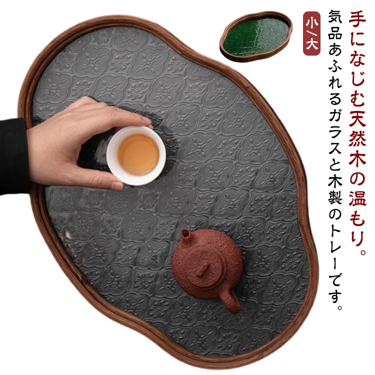 花海棠トレー ガラス トレイ カフェトレー ティートレー お盆 盛器 雲型 楕円 お皿 小皿 プレート 木トレー 30cm 35cm おしゃれ ガラス皿 ガラスプレート 収納トレイ イ フローラガラス