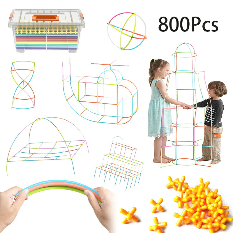 チューブ式ブロック セット 5色 800ピース 収納ボックス付き マカロン ストロー 積み木 ブロック 保育園 ビルディングブロック 知育 玩具 学研 おもちゃ 立体空間 子供 建物 親子活動 遊び