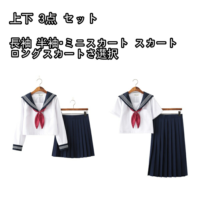 セーラー服 コスチューム 前開き 白 上下 3点 セット 長袖 半袖?ミニスカート スカート ロングスカートさ選択 前開き コスプレ ダンス パフォーマンス 新しい 学校 制服 女子 学生