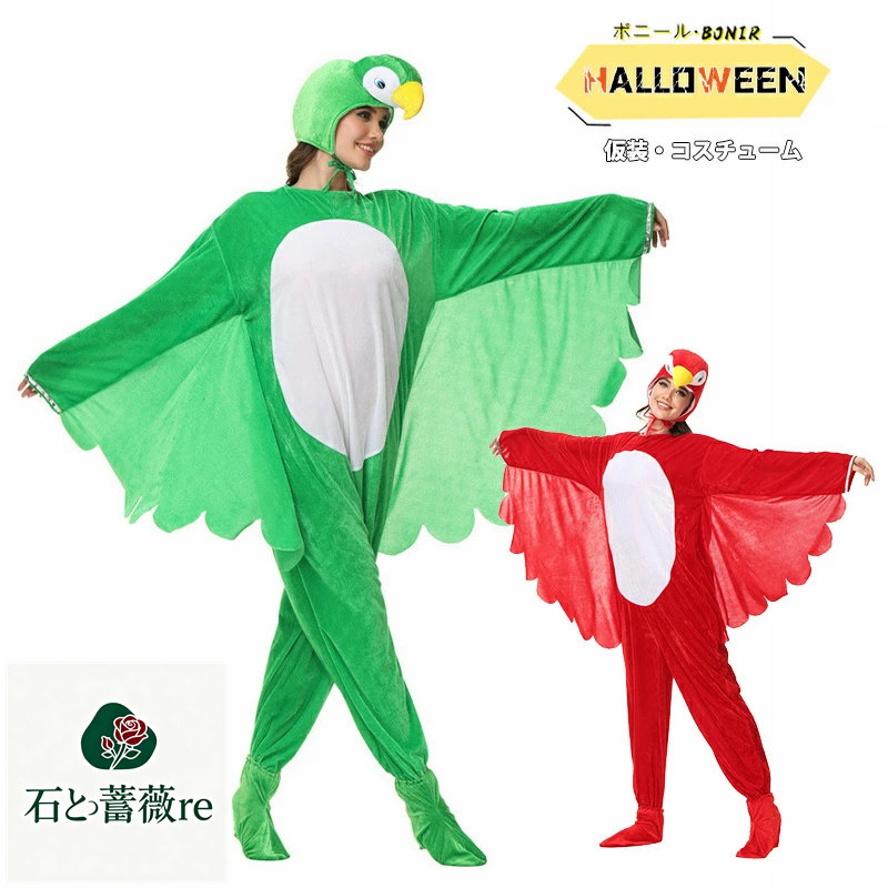 ハロウィン衣装 大人用 カートゥーン動物 連体衣 オウム コスチューム パーティー用 レッドパロット グリーンパロット ロンパース 仮装 舞台演出 学芸会 文化祭 発表会 学園祭 イベント用 舞台衣装