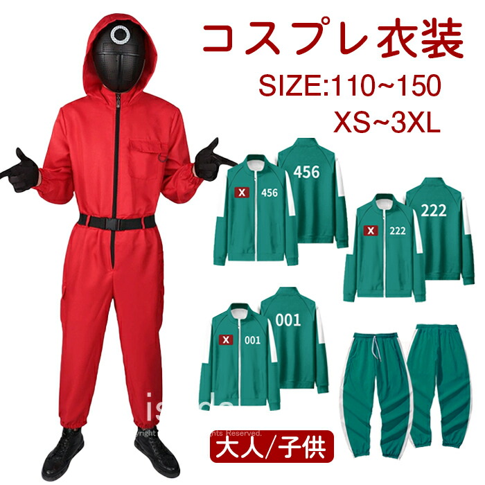 新登場 ハロウィン コスプレ 衣装 ジャージ コスチューム ○△□のコスプレ 仮面 マスク付き 警備員衣装 連体服 赤いジャンプスーツ 赤い服の人 上下セット 番号 スポーツウェア 韓国 映画 456