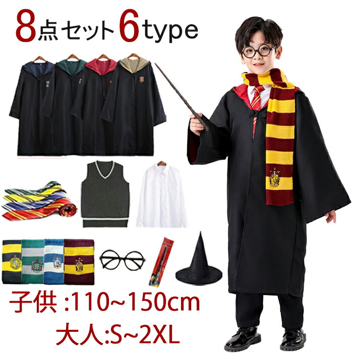 ハリーポッター コスプレ 仮装 ローブ 子供 コスチューム セット 衣装 マント 杖 ハリー ハロウィン仮装 大人 リザリン 魔法 学園祭 男女兼用 ギフ ハロウィン