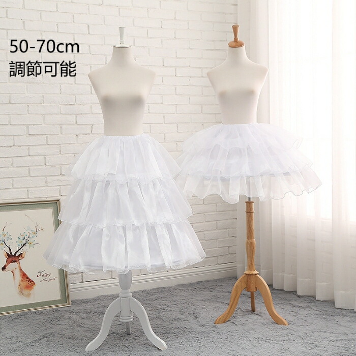 ロリータ パニエ ワイヤーパニエ 3本ワイヤー 50-70cm長さ調節可 ボリュームアップ 鳥かご型 Aライン ハロウィン コスプレ 発表会 衣装 フリル ふんわり 大人用 スカート ペチコ 調整自由