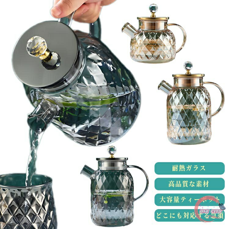 耐熱ガラス ガラスケトル ジャンピング 透明 ダイヤモンド 耐熱ガラスポット 直火 工芸茶 茶こし付き 紅茶ポット ガラス急須 電子レンジ可 おしゃれ ガラス 紅