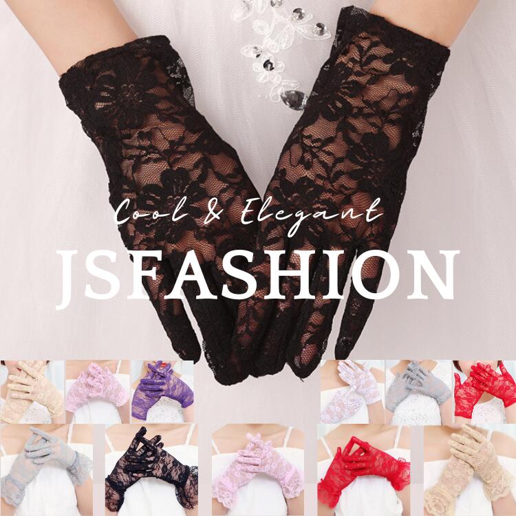 レース手袋 全7色 グローブ パーティー用 フラワー ショート丈 結婚式 演奏会 ハロウィン 仮装 冠婚葬祭 ダンス ウェディング ブライダル 黒手袋 ホワイト フォーマル ブラックレース UV 花嫁