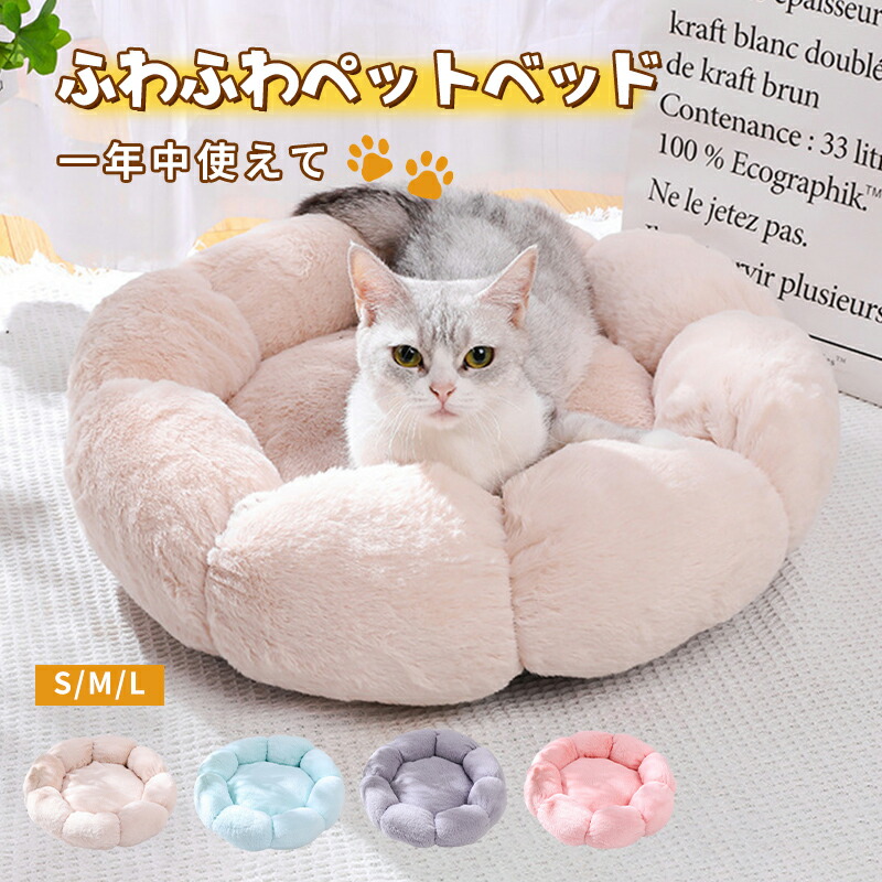 猫ベッド ペットベッド 丸型 花型 犬ベッド 無地 犬ハウス ネコベッド クーション 洗える 犬用ベッド 猫用ベッド 猫ハウス クッション 中型 通年 犬猫寝 小型