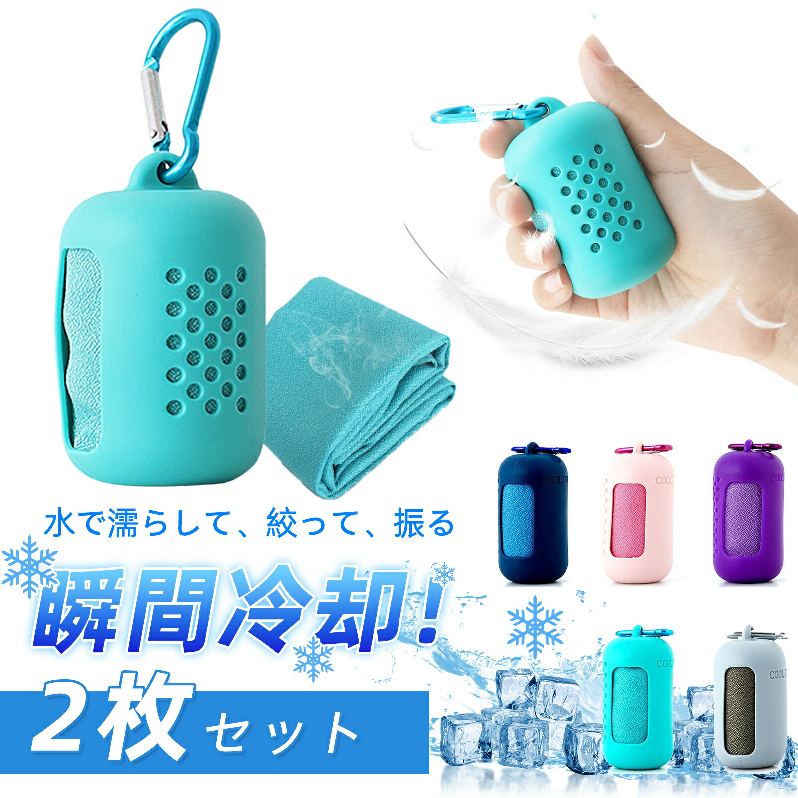 送料無料 【お得な2点セット】ひんやりタオル 冷却グッズ ケース付き クールタオル 子供 吸水性抜群!シリコン収納ケース付き 持ち運び便利 熱中症対策