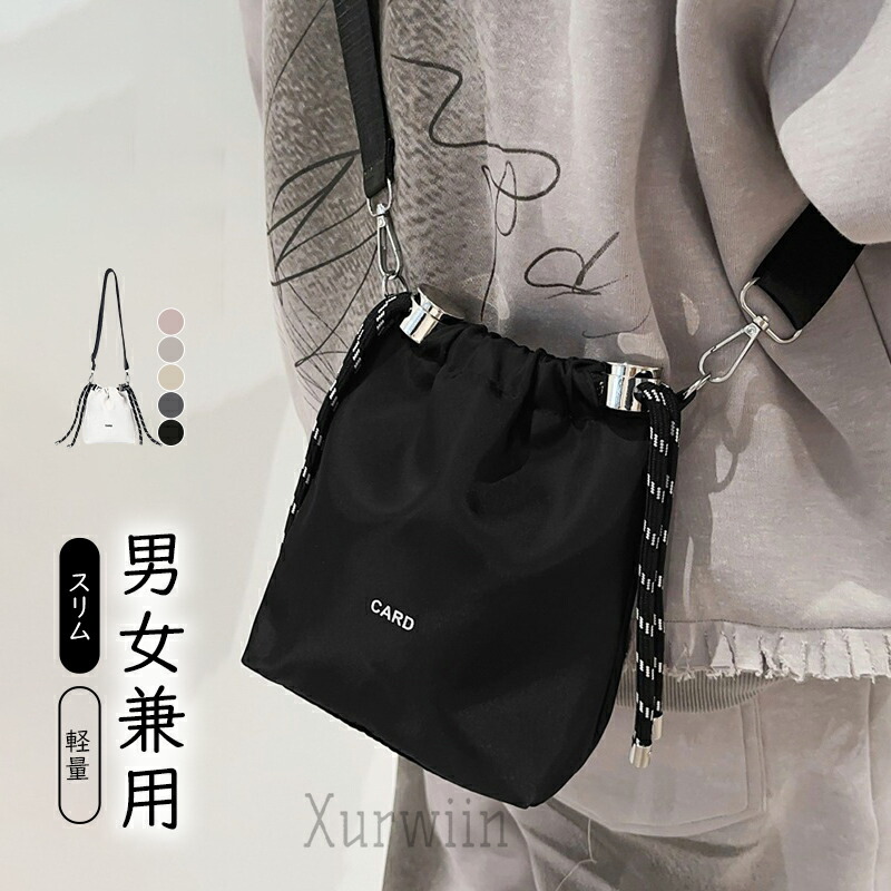ショルダーバッグ レディース ナイロン バッグ 縦型 斜めがけ 肩掛け 小さめ 巾着バッグ ポーチ ポシェット スマホポーチ ミニショルダーバッグ ドローストリングバッグ 軽い ミ ミニバッグ