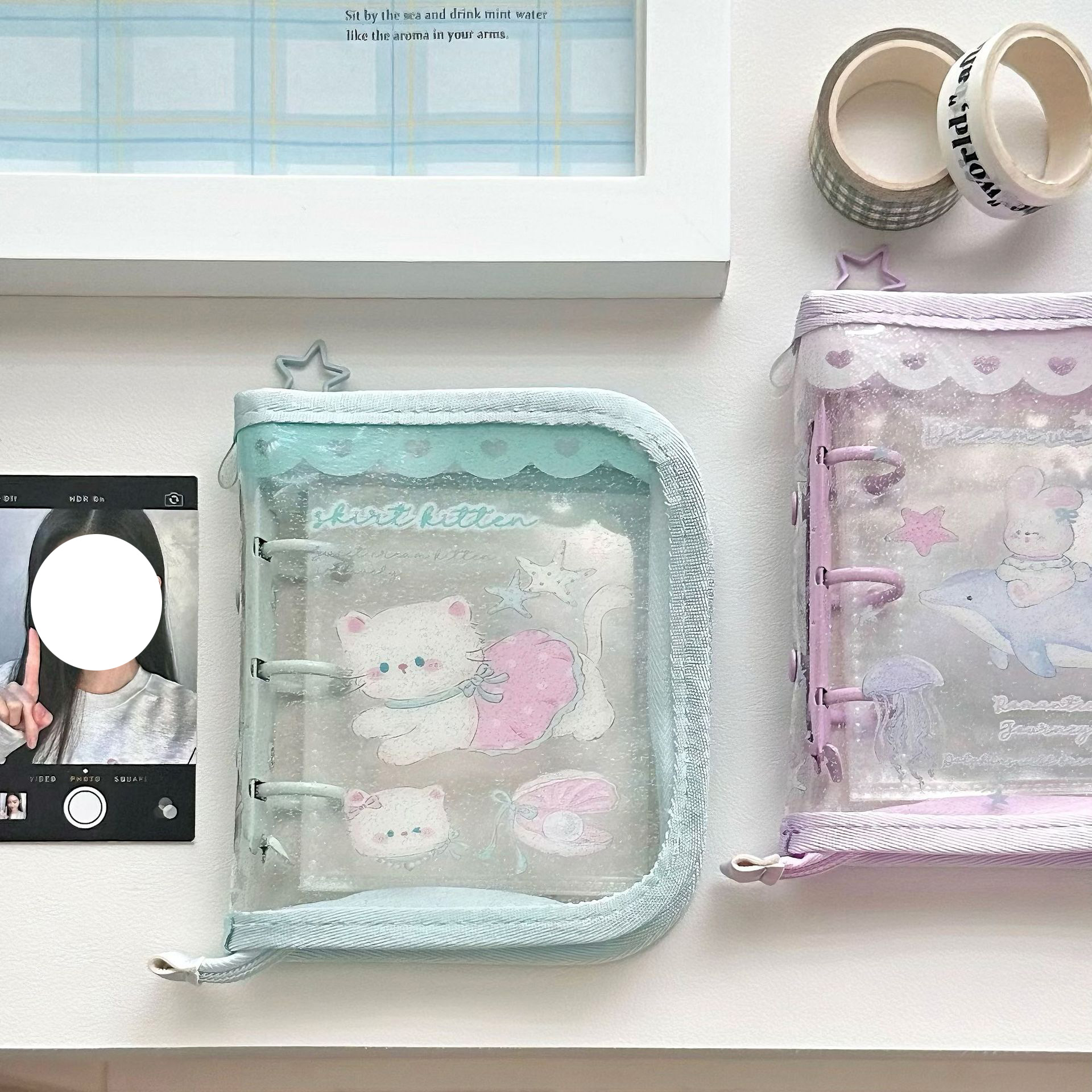 シール帳 透明 クリア バインダー 6穴 A7 はがせる 女の子 手帳 シール台紙 コラージュノート シールバインダー コンパクト カスタマイズ トレカ収納 推し活グッズ オタ活 手のひらサ ファイル