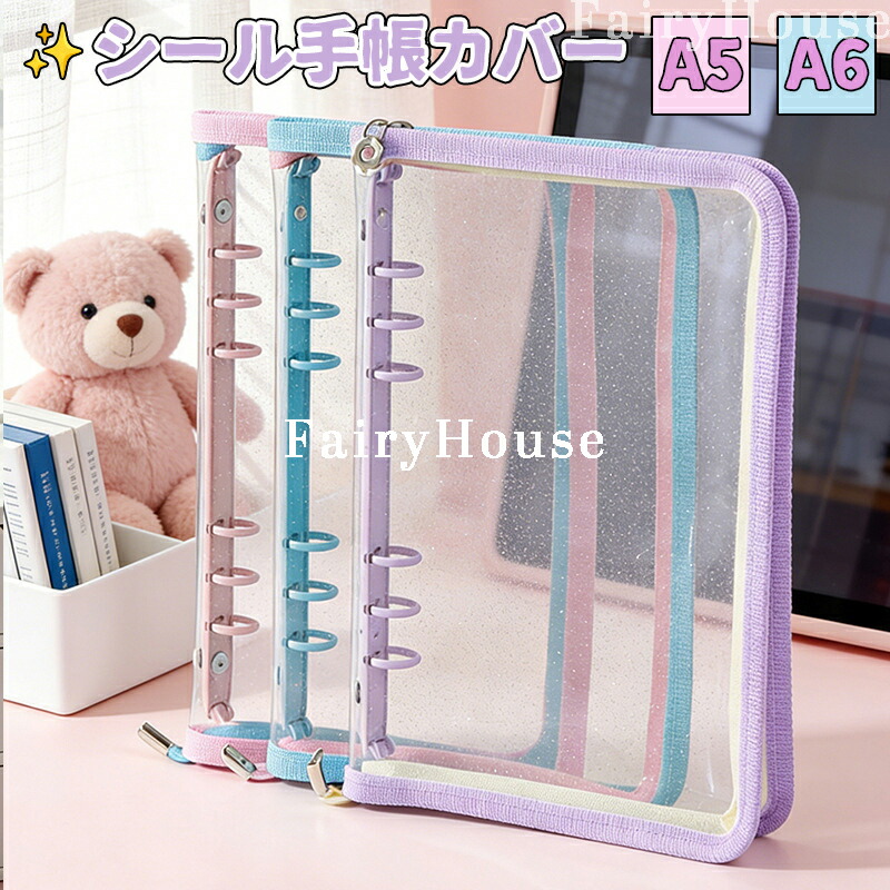 シール帳カバー PVCカバー A5 6穴 シール収納 クリア手帳 透明バインダー カスタマイズ手帳 DIYデコ ミニ手帳 コンパクト手帳 スケジュール帳 推し活 詰め替え可能 持ち運び便利 シール帳