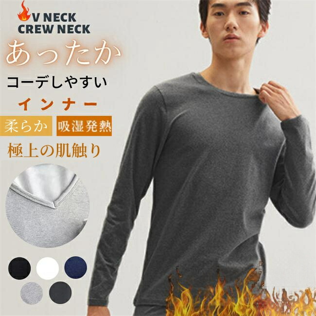 裏起毛 肌着 インナー tシャツ 長袖 メンズ ヒートテック Vネック Uネック 春 秋 冬 カットソー ラウンドネック 丸首 アンダーシャツ 防寒着 防寒 厚手 発熱 細身 大きいサイズ M スリム