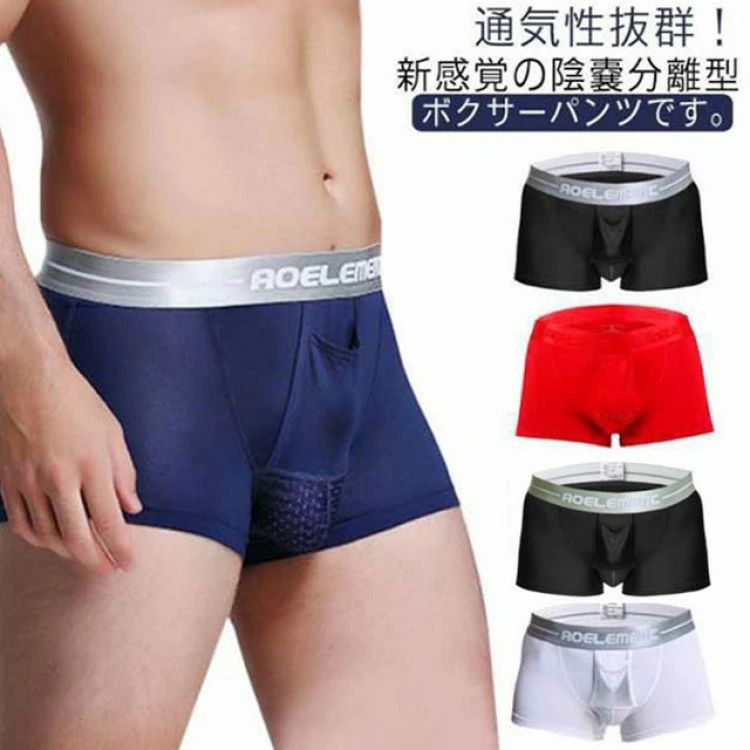 陰嚢分離 さわやか 4枚セット 上向き 蒸れない 通気性 パンツ 吸汗速乾 分離型ボクサーパンツ 薄手 インナー下着 アイスシルク 股間冷却 大きいサイズ 爽やか感触 下向き
