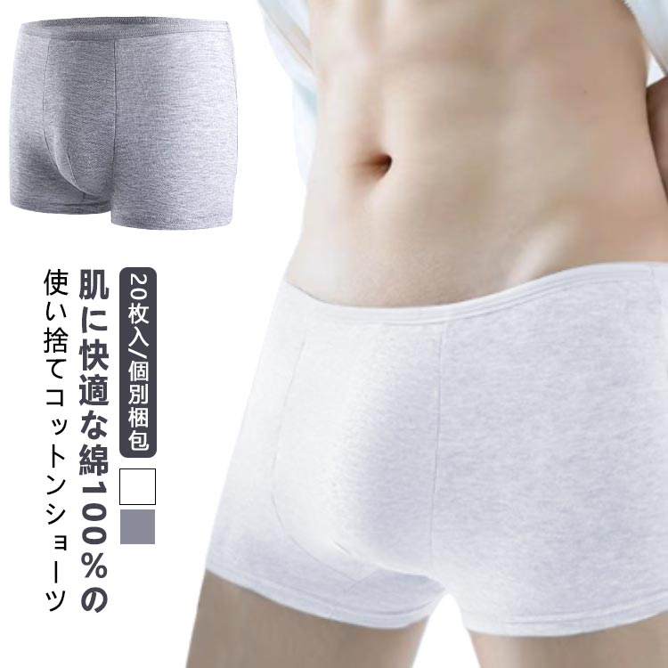 20枚入 セット ショーツ 使い捨てパンツ 100 男性用 メンズ 個別包装 コットン ボクサーパンツ パンツ 使い捨て 下着 綿100% グッズ 旅行 業務 避難 スポーツ 衛生的 消耗品 携 入院