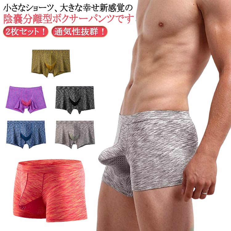 メンズ ボクサーパンツ 2枚セット 蒸れない 分離 男性下着 ボクサー 分離型パンツ メンズ下着 ローライズ ゾウさんパンツ 竿玉 分離 パンツ 蒸れない 陰嚢分離