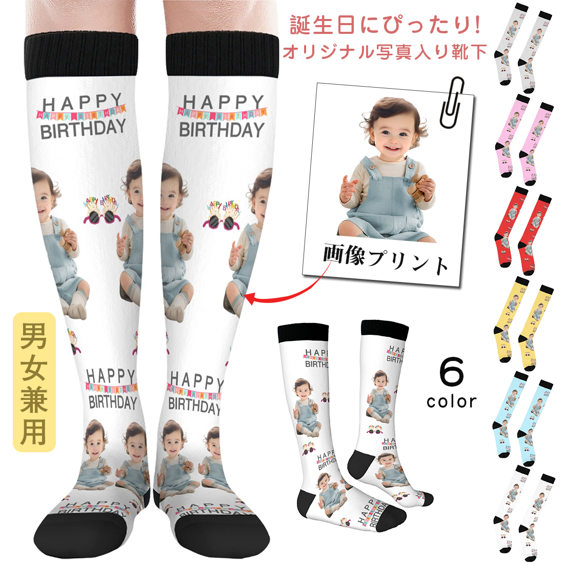 【誕生日靴下】プリント靴下 オーダーメイド プレゼント 誕生日 記念日 ギフト プリント靴下 ハッピーバースデー 快適 蒸れにくい 速乾 男女兼用 フリーサイズ ワンサイズ おもしろ プレゼント サプライズ 忘年会 景品 メンズ レディース ペア カップル 彼氏 旦那