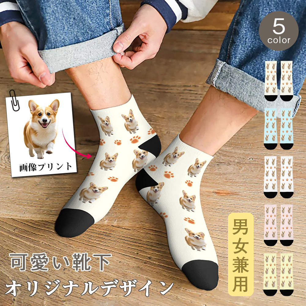 【愛犬プリント靴下】オーダーメイド靴下 愛犬 写真プリント 犬柄 ペット 写真入り 靴下 男女兼用 フリーサイズ ギフト プレゼント 記念日 誕生日 ペットグッズ 犬グッズ 通気性 速乾 伸縮性 思い出 おもしろ靴下 ユニセックス 飼い主 カップル ペア お揃い
