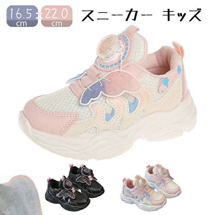 スニーカー スポーツ靴 女の子 キッズシューズ ダンス 運動靴 可愛い ランニングシューズ ローカット蝶々 ダイヤル カジュアルシューズ お姫様 履きやすい 通園 通学 キッズダン 小学生