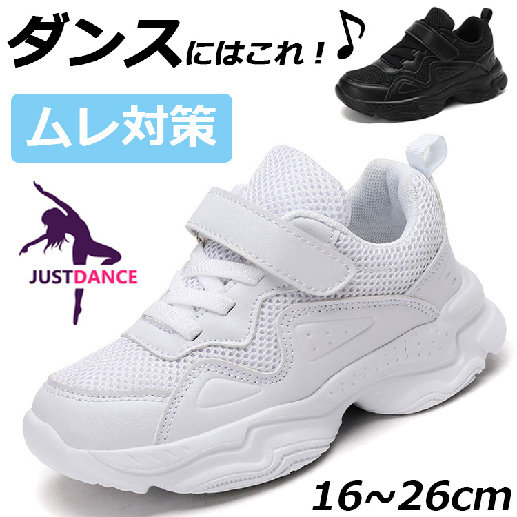 ダンスシューズ キッズ スニーカー 白 黒|軽量 子供靴 14.0~22.5cm マジックテープ 男女兼用 運動靴 通学用 春夏秋冬 カジュアル