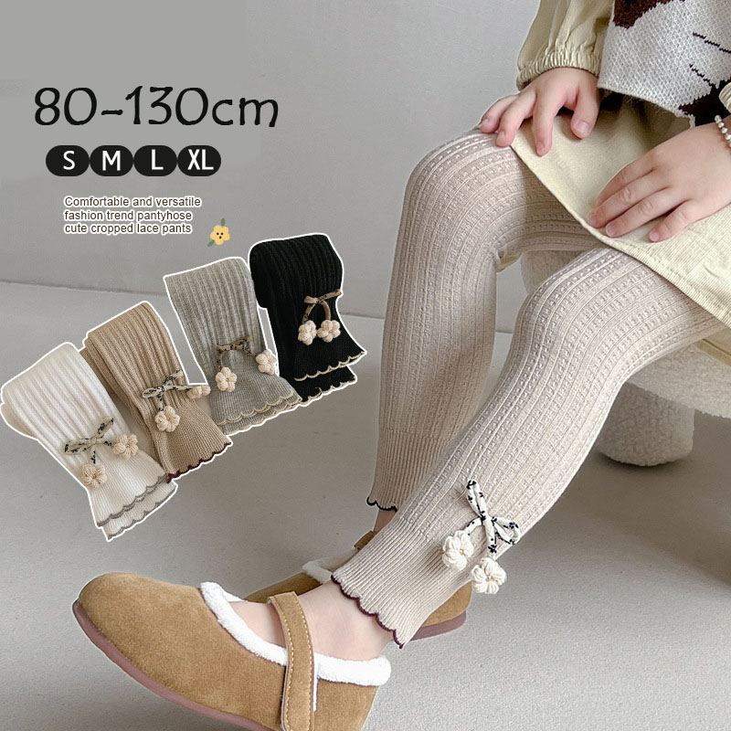 女の子 レギンス 綿混 花柄 リボン 9分丈 スパッツ 子供服 キッズ ベビー レギンスパンツ タイツ ボトムス 春 秋 80 90 100 110 130cm シンプル カジュアル 120
