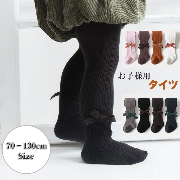 子供タイツ キッズ 靴下 ソックス タイツ リボン付きリブタイツ 丸編み カラータイツキッズ マタニティ キッズファッション レッグウェア ベビー