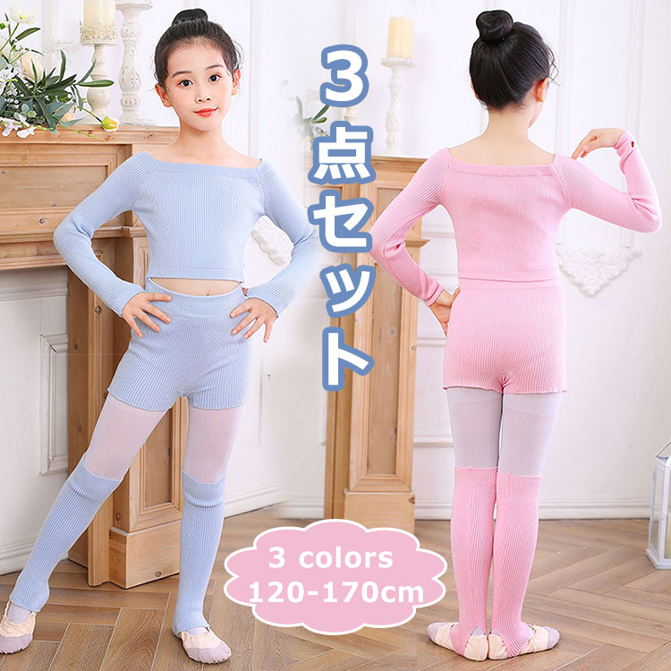 子供 カシュクール バレエ用 ダンス カーディガン パンツ 長袖 3点セット セーター レッグウォーマー ウォームアップ ソックス 保温着 上着 ボレロ 上下セット 靴下 セットアップ トップ キッズ