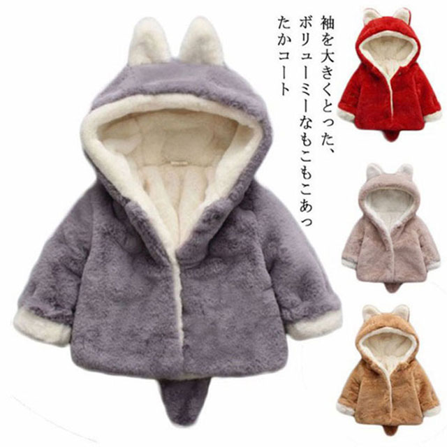 ベビー服 コート 子供服 フード付き 男の子 女の子 ジャケット アウター おしゃれ 防寒 耳付き ふわふわ もこもこ 赤ちゃん 暖かい 厚手 無地 防風 可愛い 秋冬 保温 長袖 70 80 幼児