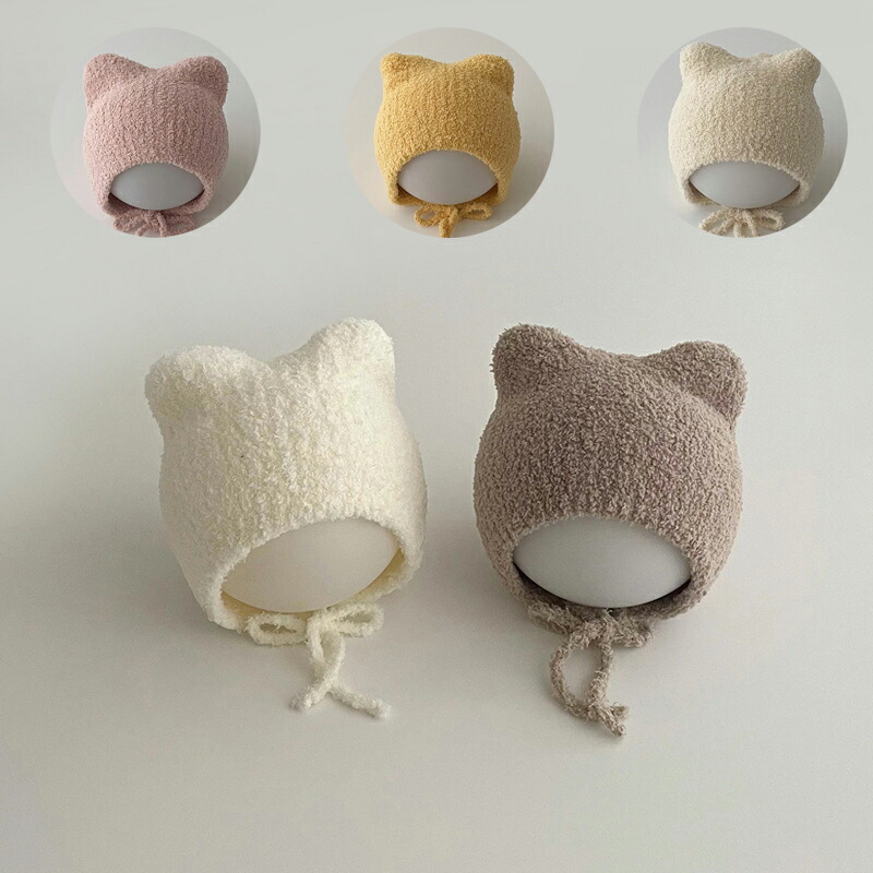 当営業日に日本倉庫から出荷可能 新生児 帽子 ボンネット帽子 フリースのよう 猫耳 ベビー帽子 もこもこ耳あて付き インスタ風 ベビーファッション 秋冬 赤ちゃん ベビー おしゃれ 女の子 男 可愛い