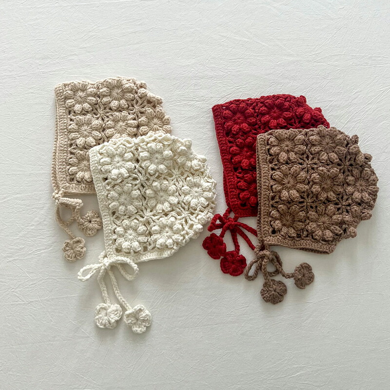 一部が当営業日に日本倉庫から出荷可能 帽子 ニット 新生児 ボンネット帽子 可愛い花柄 透かし 編み キャップ ベビー帽子 ベビーファッション 秋冬 赤ちゃん 可愛い おしゃれ 女の子 ベビー