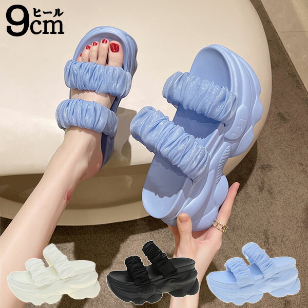 \10日限定10%OFFクーポン+P5倍/ 厚底サンダル ミュール レディース 軽量 ビーチサンダル 9cmヒール 身長アップ 光沢感 夏 サンダル厚底 柔らかい かわいい おしゃれ シンプ 疲れない
