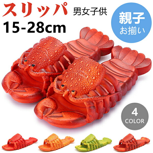 サンダル ユニーク 親子お揃い エビ柄 スリッパ ロブスター エビ ザリガニ 伊勢海老 海老 蝦 えび メンズ レディース キッズ 男女兼用 えび靴 シャワーサンダル ビーチサンダル海水浴場 個性的