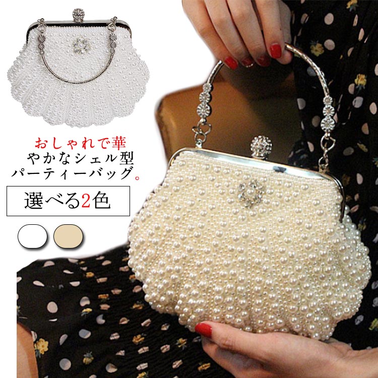パーティーバッグ シェル型 貝殻バッグ クラッチバッグ パールバッグ パーティー パーティ バッグ ハンドバッグ パール 結婚式 アクセサリーバッグ 披露宴 お呼ばれ かわいい 発表会