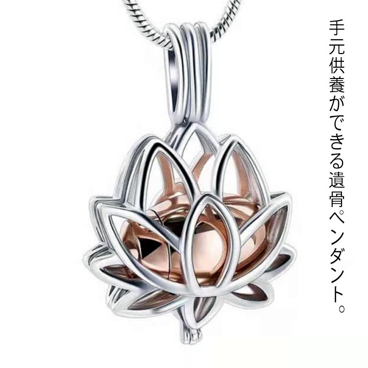 蓮の花 メモリアル ペンダント 遺骨ペンダント 遺骨ネックレス 手元供養 遺骨カプセル 犬 猫 遺骨アクセサリー 遺骨収納 分骨用 お洒落 ミニ骨壷