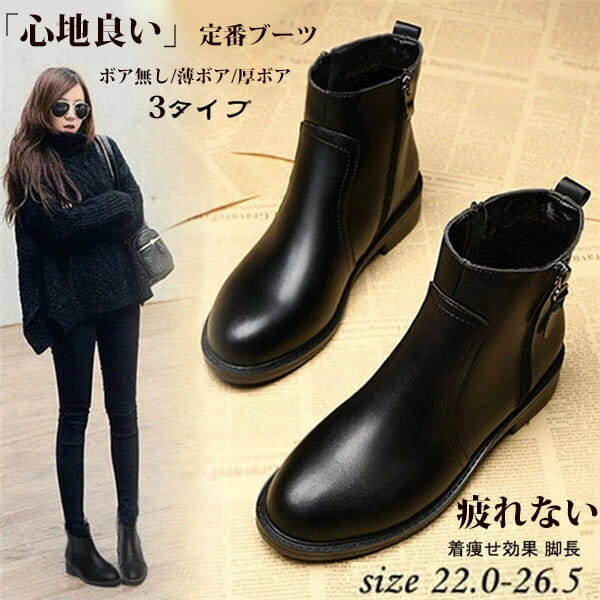 10 歩きやすい 内側にも外側にもジップ 大きいサイズ26.5 美脚 ボア 靴 シューズ ペタンコ レディース ブーツ エンジニアブーツ