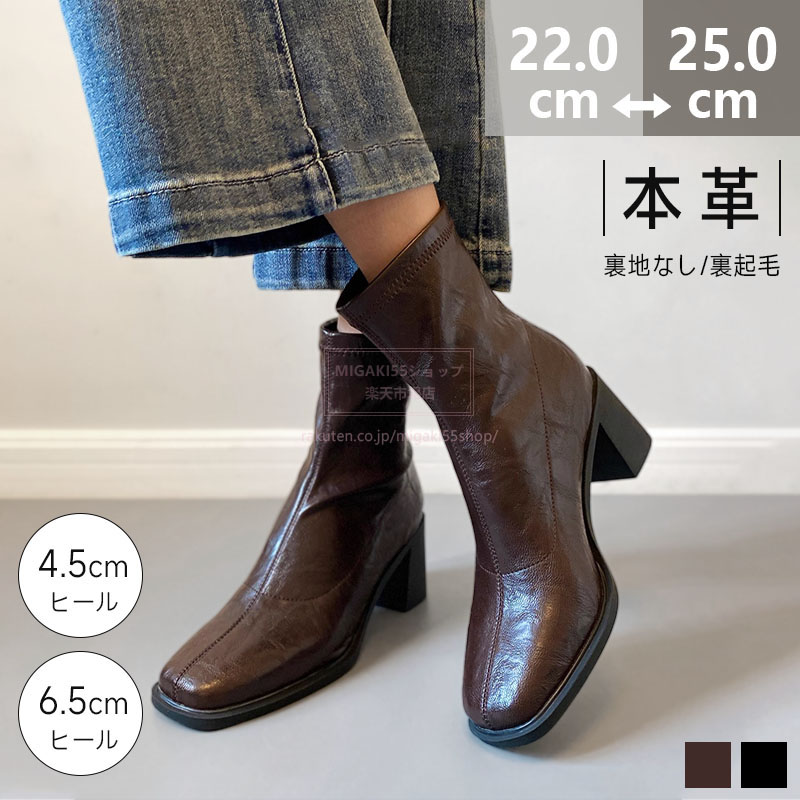 ショートブーツ レディース 歩きやすい ブーツ スクエアトゥ ストレッチ ローヒール 黒ブラック 痛くない 履きやすい 柔らかい 防寒 本革 静音ソール 裏起毛 6.5cm おしゃれ 伸縮 4.5cm