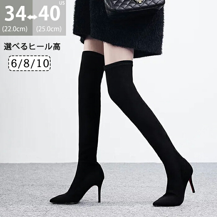 ニーハイブーツ ソックスブーツ レディース ヒール高が選べる 6cm 8cm 10cm 冬ブーツ 秋ブーツ ピンヒール ハイヒール 裏起毛 防寒 温か ロング ストレッチ ブーツ 韓 ポインテッドトゥ