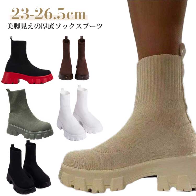 厚底 ショートブーツ ニットソックスブーツ レディース