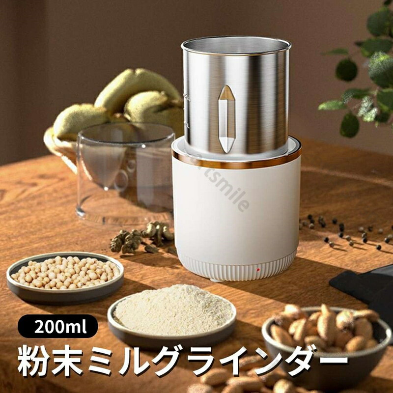粉末ミルグラインダー 0.2L ホワイト 米粉 粉砕 簡単操作 誤作動防止 ステンレス製 清潔 レシピ おしゃれ スタイリッシュ 製粉機 家庭用 電動 粉砕機 ミルサー コーヒーミル ミ ミルミキサー